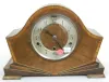 2 Westminster Chimes Mantle Clocks 1.) Art deco, 5 rod. (Small veneer chips; worn dial; no pendulum.) 2.) Walnut case; dual chime, 8 rod. 9" x 11"
