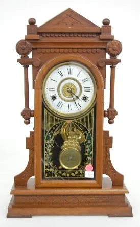 Victorian Walnut Kitchen Clock w/ Alarm Victorian Walnut Kitchen Clock w/ Alarm: brass trim; compensating pendulum. (Damaged glass.)