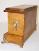 Oak 4-Column Mantle Clock: time and strike; metal dial; lion heads.