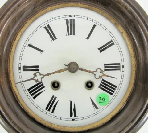 Small Black Forest Round Gallery Clock Small Black Forest Round Gallery Clock: 7" glass front; time and strike brass works. 11" diameter