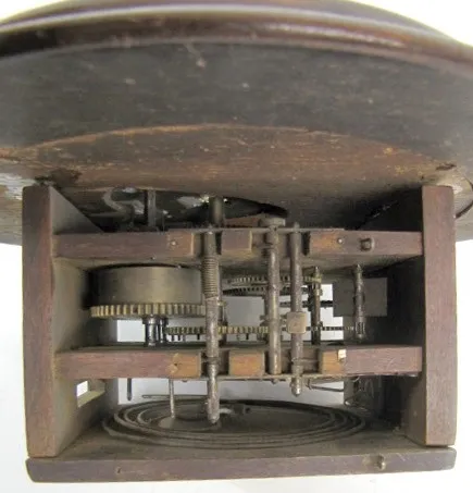Small Black Forest Round Gallery Clock: 7" glass front; time and strike brass works. 11" diameter