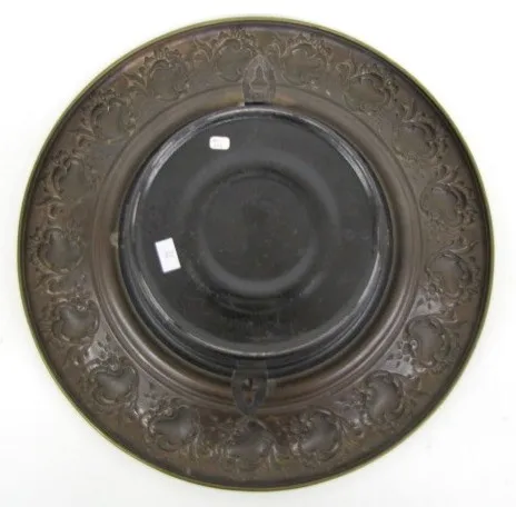 Ornate Brass Tavern Clock w/Glass Dial Ornate Brass Tavern Clock w/Glass Dial: time only; 7" reverse decorated dial. 15 1/2" diameter