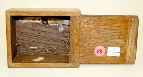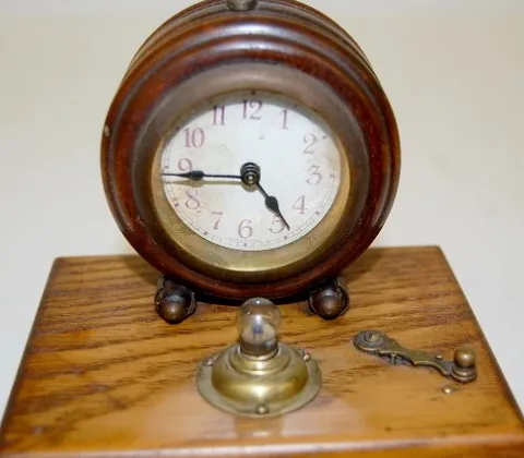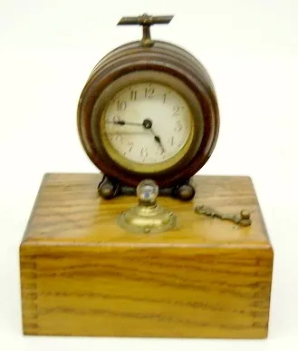 German Oak Night Light Dresser Clock: battery operated. (Stained dial.) 5 3/4" x 5"...
