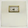 3 Vintage Metal Clock/Compacts: black Ingraham compact; white Weldwood compact; Elgin Watch Case co. brushed shell shaped compact. Not tested for running condition; all sell in as is, as found condition.