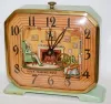 2 Lux Clock Animated Alarm Clocks 2 Lux Clock Animated Alarm Clocks: 1.) Bob's Trading Post; grandpa in chair, grandma at spinning wheel. 2.) No words, but same scene as above. (Not running.)