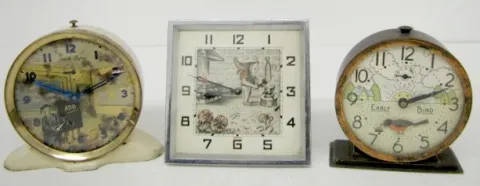 3 Antique Animated Alarm Clocks