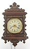 Black Forest Miniature Hanging Clock w/Alarm Black Forest Miniature Hanging Clock w/Alarm: walnut case; 4" dial. (Paint spattered on case.) 15 1/2" x 9"