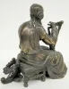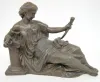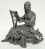 2 Clock Statues, Bronzed and Spelter: 1.) Bronzed clock statue, girl with flute; not marked, 7". 2.) Spelter clock statue, girl with harp; JA on the bottom, 8".