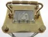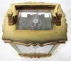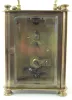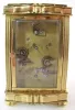 2- 8 Day French Carriage Clocks: 1.) Signed LeRoy dial; 8 day time only; porcelain dial; Arabic numerals; beveled glass, has key. (Dial damaged.) 5 1/4" 2.) Tiffany 8 Day French Carriage Clock w/Alarm: 8 day with time and alarm; porcelain dial; Roman numerals; beveled glass; with alarm and key. (Damaged dial). 5 3/4"