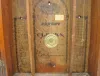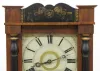E. and G.W. Bartholomew Looking Glass Clock: wooden movement; wood dial; has pendulum and key; interior label; stenciled to and columns; mirror age unknown; not tested. (Dial shows wear; minor rubs to lower left door.) 35 3/4"