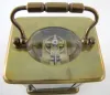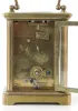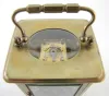 2- 8 Day French Carriage Clocks: 1.) 8 day time only; porcelain dial; Roman numerals; beveled glass, has key. (Dial hairlined.) 4 1/2" 2.) 8 Day French Carriage Clock: 8 day time and strike; porcelain dial; Roman numerals; beveled glass, has key. (Dial hairlined.) 5 1/2"