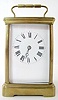 8 Day French Carriage Clock 8 Day French Carriage Clock: 8 day time and strike; porcelain dial; Roman numerals; beveled glass, has key. 7"