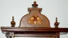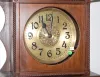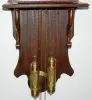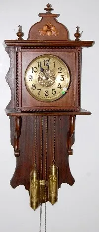 Mahogany Carved German Hanging Grandfather Clock: German; brass dial, weights and pendulum fitted into hanging cabinet with acorn carved crest; 11" di...