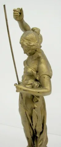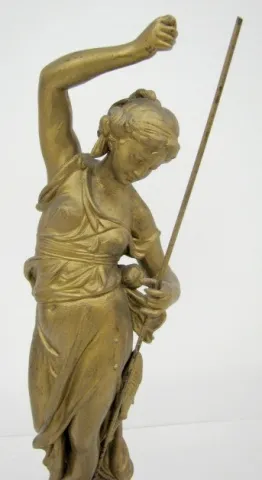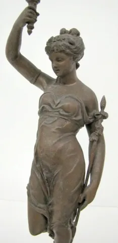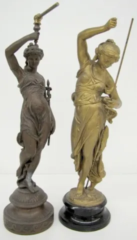 2 Lady Statue Clock Bases 2 Lady Statue Clock Bases: No. 4, 18 1/2"; No. 24, 17 3/4". (Roughness to patina.)