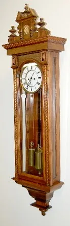 2 Wt. 8 Day German Vienna Regulator Clock 2 Wt. 8 Day German Vienna Regulator: strikes hour and half hour; porcelain dial; circa 1900. 43 1/2" *** Please note, this item is F.O.B. Marshalltown, IA, you must make shipping arrangements.