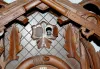 48" Gun and Game Deer Head Cuckoo Clock: black forest carved; glass eyes; appears to be walnut; pheasant, rabbit, birds and horn. 48"