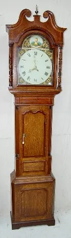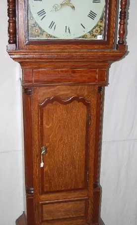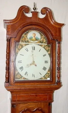 Oak Inlaid Tall Case Clock w/Calendar Dial