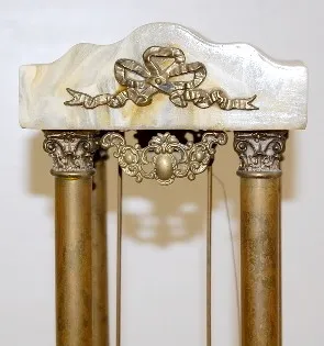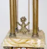 Ornate Marble Swinging Doll Mystery Clock: German 8 day movement in lower section; new back and movement replaced and restored by Steve McKinney; old case, old swinging doll; dial age questionable, may have been replaced; clock looks great, doll swings to and fro. 20 1/4" x 9" x 10"