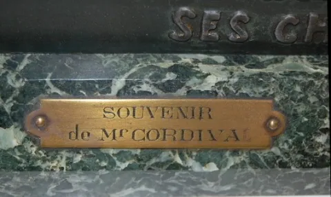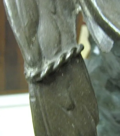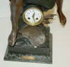 Prometheus Unbound French Statue Clock Prometheus Unbound French Statue Clock: marble base; tag on base "Souvenir de McCordival"; the bottom the statue has "La Pensee Brisant Ses Chaines"; tablet on the statue saya "LVMEM ET LIBERTES"; statue signed E. Picault; movement signed AD Mougin and numbered 2935; porcelain dial with floral garland; has key. Not tested for running condition. (Lower 3" of the right wing appears to have been reattached. Please see photo.) 34" *** Please note, this item is F.O.B. Marshalltown, IA, you must make shipping arrangements.