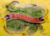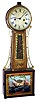 Jonathan Billings, Reading and Acton, Mass., "Striking Banjo" wall clock 8 day time and strike on internal bell two weight driven skeletonized brass movement in mahogany case with gold leafed throat frame and reverse painted throat and lower tablets with