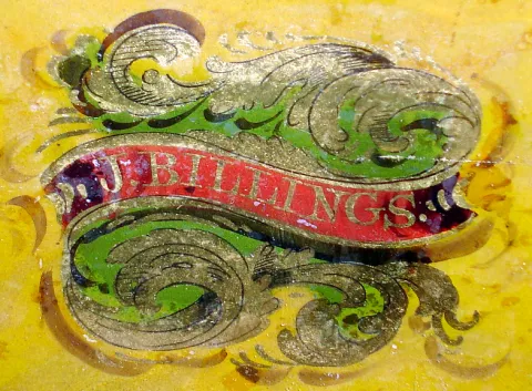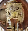 the case retains its original finish with darkened gold leaf and the lower door a possible replacement. The skeletonized movement has interesting heart and diamond cutouts. Both original glasses are cracked. The dial is repainted. Ht 31 1/2"