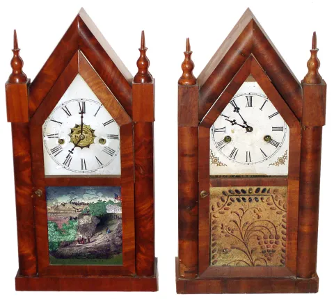 better one is Waterbury with alarm and nice tablet of Washington's Rock, N.J. Other is a Gilbert with distressed veneer and several extra holes in bac...