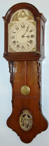 Dutch Staartklok case now fitted with an 8 day time and strike spring movement from a regulator clock, c1970