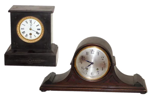 Two 8-day mantel clocks, Seth Thomas and French, early 20th century.