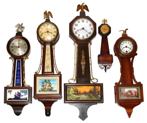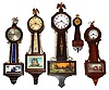 Five small wood case banjo clocks, early 20th century.