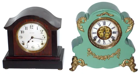 Two American 8 day time and strike mantel clocks, Kroeber and Seth Thomas.