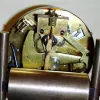 very nice condition with good dial and dome, round wood base with bubble level and brass maker plate, cylinder pendulum. Not tested. 9" high.