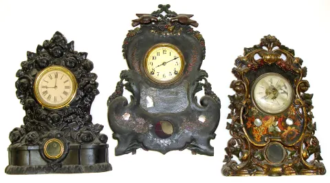 Three large Connecticut 8-day iron fronts Highly detailed and decorative.