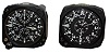 Two 3" black phenolic airplane clocks, Hamilton and Waltham. Hamilton multi dial, stamped AIB No. 2-59, ticks and sets. Waltham with R 6645-515... on back, is missing its winder.