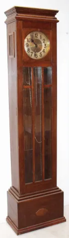 door is locked so pendulum and weights are not photographed but present. This is a restoration project with one beveled glass panel cracked, sold "as ...