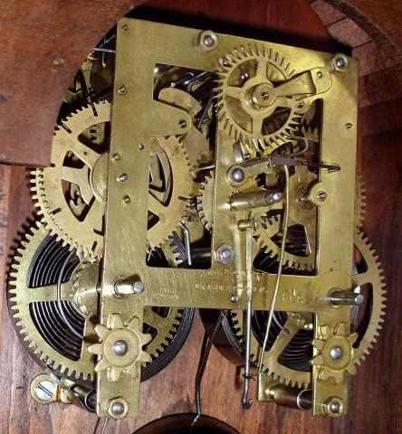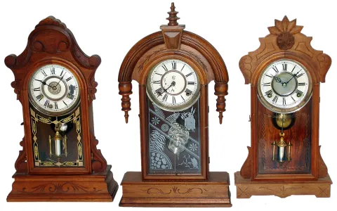 best and largest is Waterbury Paris missing its bottom side pieces and lower side molding strip, 24" high. Middle is unlabeled but has rare 3-train mo...