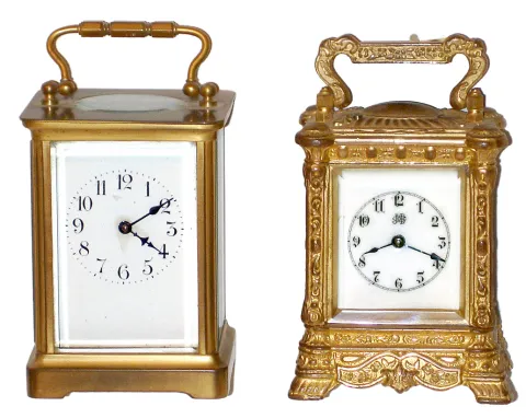 Two brass carriage clocks, French and Jennings Bros., c1910.