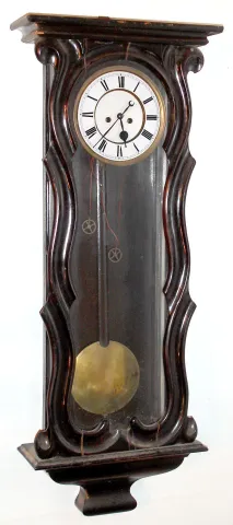 Remember German 2 weight time and strike serpentine ebonized Vienna regulator, c1900.
