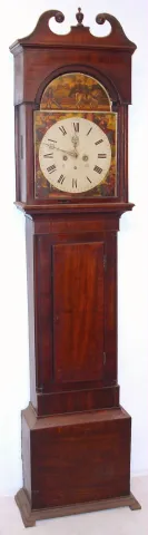 Scottish tall case clock 8 day time and strike movement in mahogany case, c1830 - 1850 this clock is a restoration project with no hood door and is sold "as is". Movement appears complete. Ht 85 1/2"