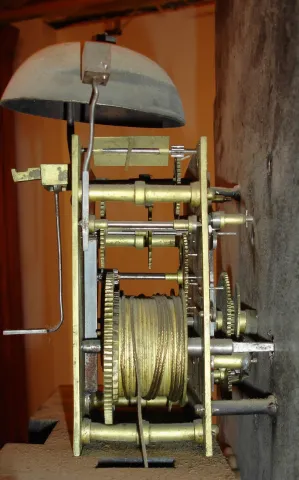 this clock is a restoration project with no hood door and is sold "as is". Movement appears complete. Ht 85 1/2"