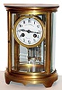 French, Vincenti and Cie, 8 day time/strike brass and glass OVAL crystal regulator, c1900 brass gilt case in nice condition with some of the original gilding intact Original porcelain dial is very clean with some slight wear to the retailer's name (Tilcen Thurber). Hands and pendulum are original. Glass is fine. Ht 8.75"