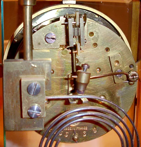 French, Vincenti and Cie, 8 day time/strike brass and glass OVAL crystal regulator, c1900