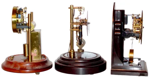 Three- Poole, Barr, Bulle; electromagnetic battery powered mantel clocks, early 20th century, 11" high.