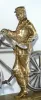 English, British United Clock Co, Ltd, Birmingham, a cast brass bicycle and male rider, in period riding clothes, and with a 30 hour rear wind and set movement in place of the front wheel, the whole on a shaped brass base with a cartouche bearing the initial "S", c1910 dial and hands are original and excellent movement is fully wound, ticks and stops; will require service before regular use. The British United Clock Co. was operated by Edward Davies, brotehr of Henry J. Davies (of Ansonia fame). The movement and dial are similar, but not the same as those produced by Ansonia. Detail on figure is quite good. Ht 6", length of base 7"