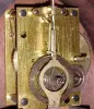 N. H. Brown, Boston, Mass., "Lyre" throat wall clock ,8 day time only weight driven movement in gilt colored case, (now painted) c1915.