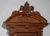 Carved and Engraved 3 Weight Vienna Regulator Clock carved faces. (Finial point damaged; no weights.) 57"
