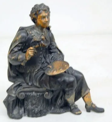 Metal Artist W/ Paint Pallette Clock Statue white metal. 9"T