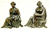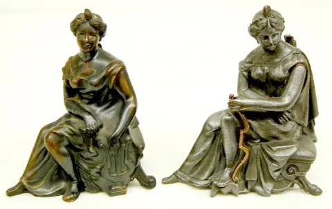 2 Seated Female Metal Clock Statues 1.) Lady with quiver of arrows on her back, bow in her hand. 2.) Lady with Lyre. Tallest 6 1/2"