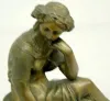Clock Statue of Lady Sitting W/ Elbow on Knee