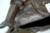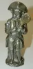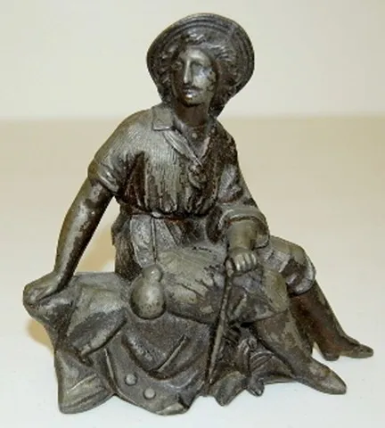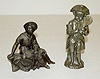 2 Metal Clock Statues: Seated Man and Boy W/Violin 1.) Man seated with coat. 2.) Boy holding a violin or mandolin.