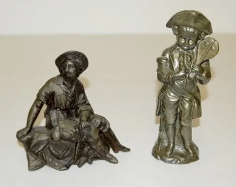 2 Metal Clock Statues: Seated Man and Boy W/Violin